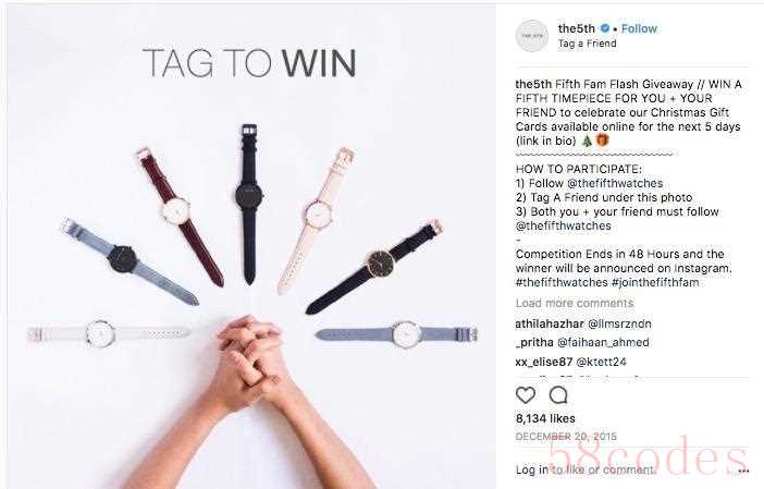 鼓励这种行为的一种方法是发布可乞求1:1共享的相关内容(例如,健身房模因要求 标记跳过腿节的朋友)。但是,让观众为他们的朋友加标签的一种更可靠的方法是运行赠品,鼓励听众为朋友加标签并关注 的帐户。