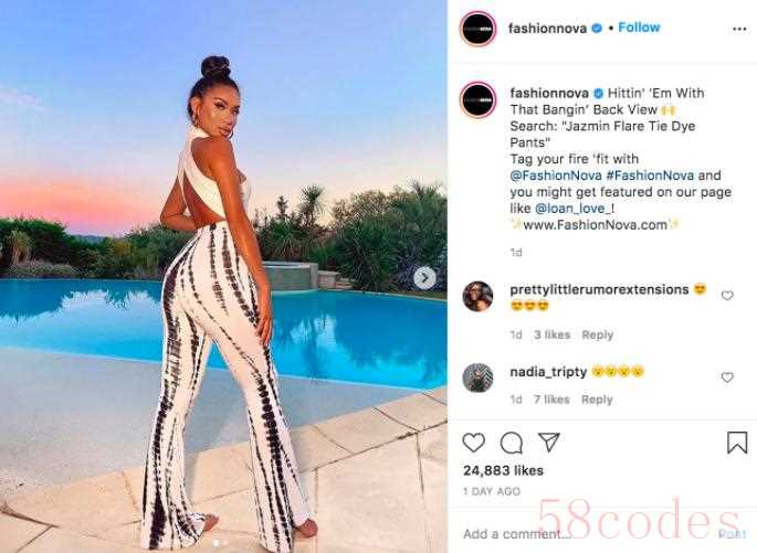 以Fashion Nova为例。在线零售商Instagram帐户在很大程度上依赖于用户生成的内容。