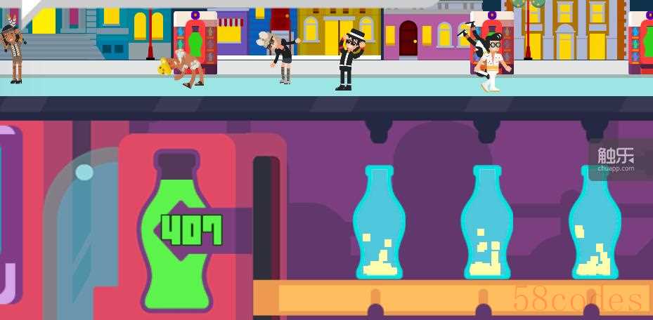 从游戏的第一秒开始,玩家就要亲自制作苏打水。玩家通过虚拟按键控制苏打水的罐装生产:按住虚拟按键苏打水流入瓶中,松开按键流水线将瓶子封装好放入仓库。