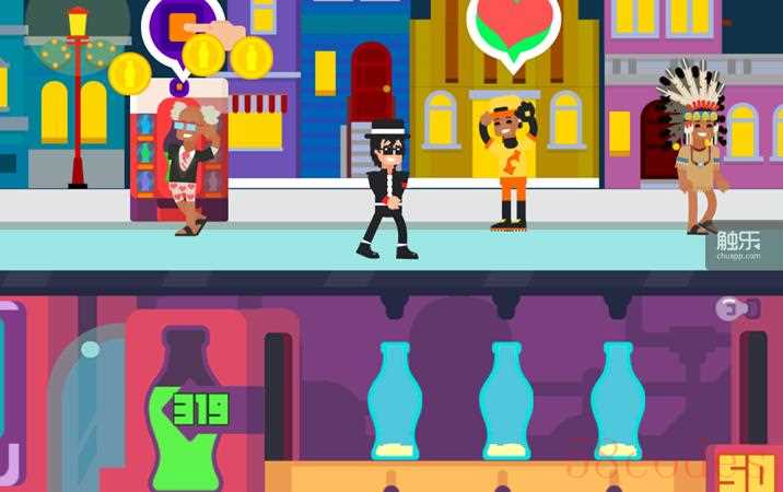 你不仅能亲手制作苏打水,建设城市。愿意的话,可以用手指在屏幕底下一扫,散落一地的金币就会齐刷刷地飞向屏幕上方变为数字。甚至包括每天早晨七点飞碟将库存清空,补充到自动售货机里的那种快感,真是难以言喻。