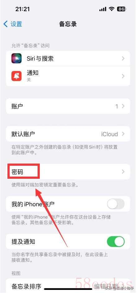 "方法一:使用 Apple ID 密码保护整个备忘录应用 (最常用)"