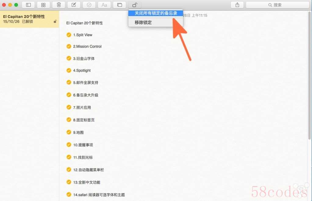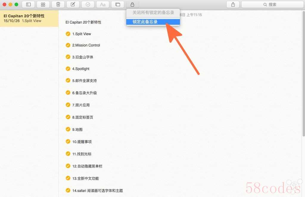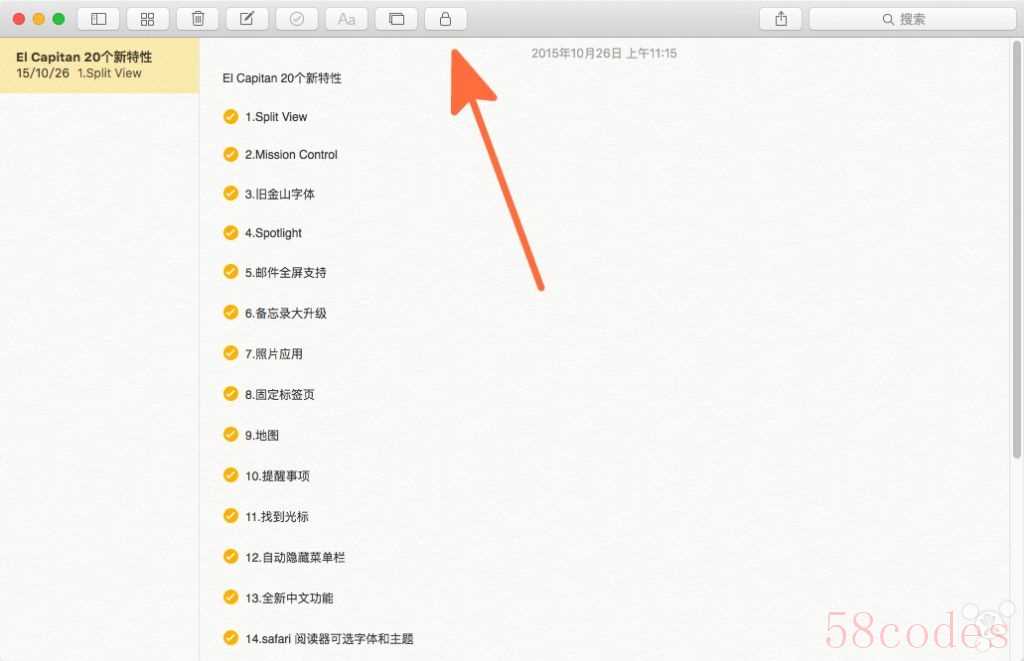 威锋网讯,备忘录往往记录着一些重要的个人信息,苹果也已经意识到它的安全性至关重要,于是在 OS X 10.11.4 中苹果为 Mac 的备忘录应用也加了一把“锁”,让Mac用户可以为备忘录进行加密处理。