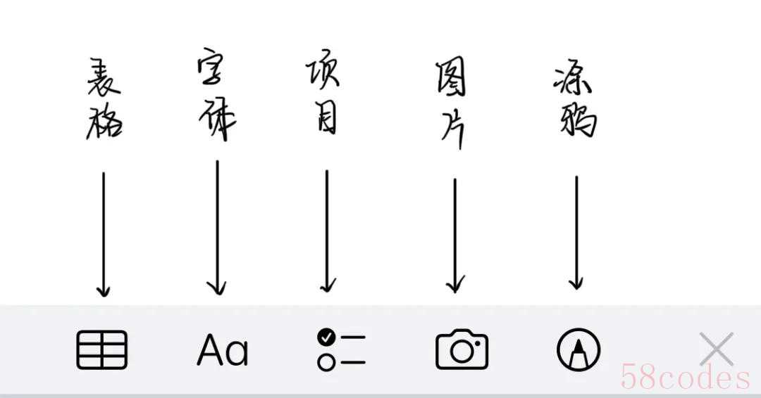 "手写笔迹:" 直接用Apple Pencil(连接iPad)或手指在备忘录上手写,笔迹会智能识别并转换为可搜索的文本。