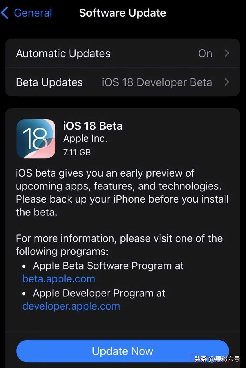 - 查找 出现的 iOS 18 开发者测试版,选择下载并安装