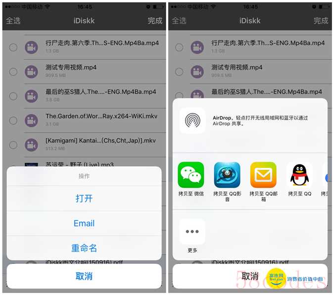 我们还能在iPhone上直接查看U盘的媒体文件,比如office文档,mkv、mp4等格式的视频文件,还有音乐文件和照片文件等。在查看之余iDiskk Pro还支持将文件发送到其他APP,比如将mp3文件复制到QQ音乐中,将jpg图片复制到照片应用。当然,我们也能将U盘里的文件直接通过微信或者QQ发送给朋友们。