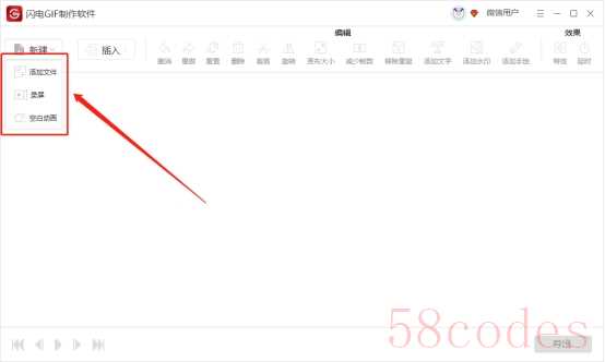 一、gif制作方式有以下三种,直接添加文件将原有的gif动图进行编辑;也可以选择录屏功能,在视频中录制其中一段生成gif,又或者直接新建一个gif空白动画,然后通过图片,涂鸦等方式制作gif(这种较为复杂);