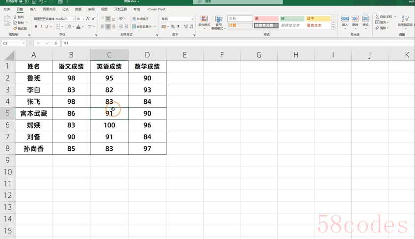 比如在这里,我们想要为得分都增加5,先输入一个5,随后复制它,然后选择分数的数据区域,点击鼠标右键,找到【选择性粘贴】,在运算中选择【加】即可
