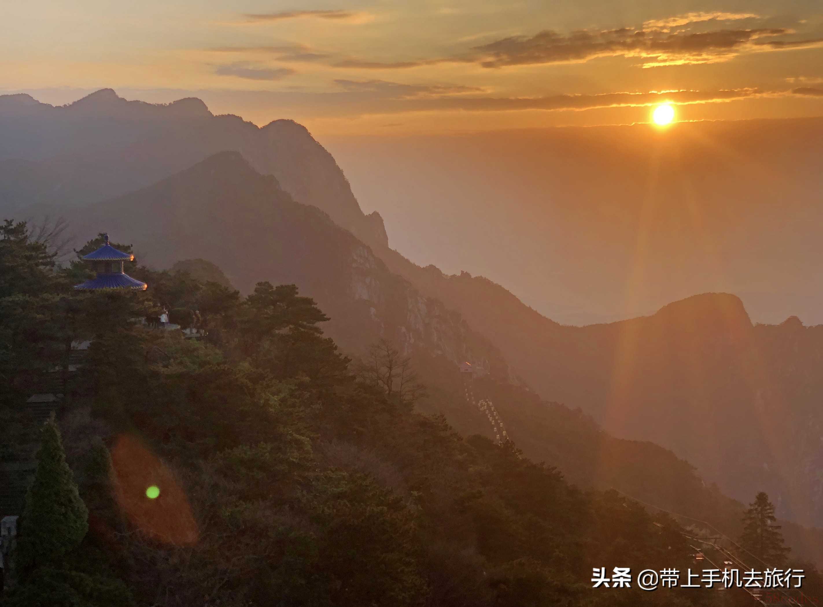 作品说明:《日出含嶓口》,使用iPhone X拍摄于江西省庐山风景名胜区。镜头不干净,会加重“鬼影”、眩光等杂光现象。