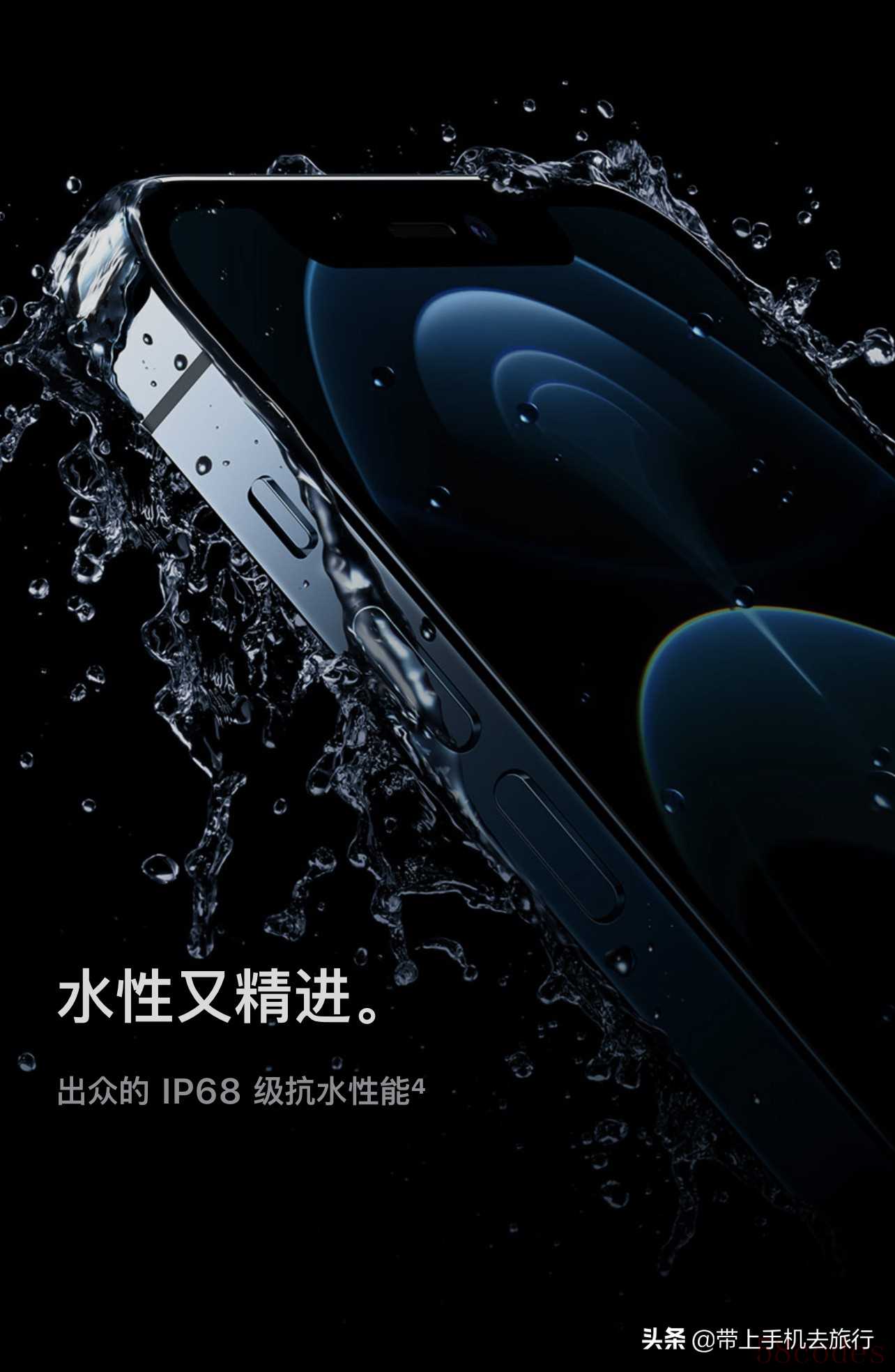《iPhone 12 Pro防水广告图》,素材截屏自苹果官网