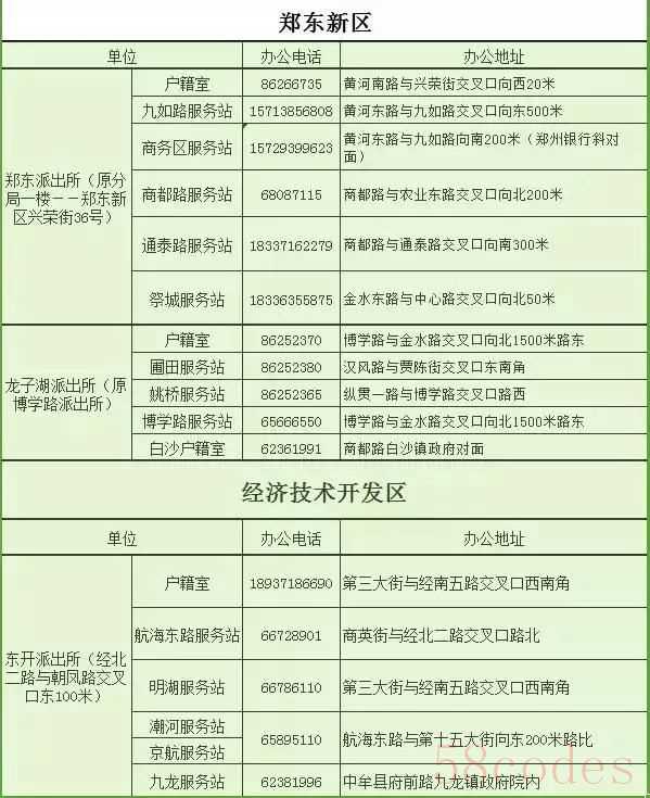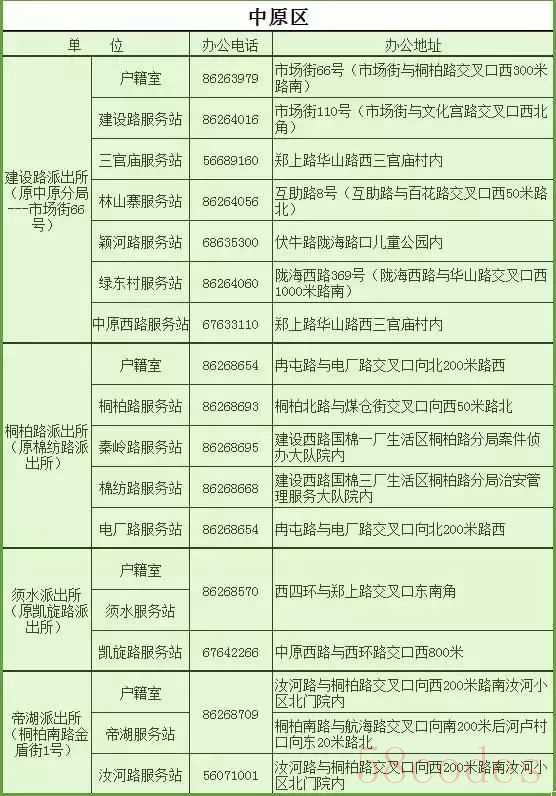 "郑州市公安局:" 各分局、交警支队、派出所电话