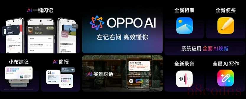 OPPO Find X9配备AI按键,预装的ColorOS 16支持与苹果全家桶互联,iPhone来电话OPPO可以接听,换机也不用换手表。全新AI一键闪记已经支持记视频,还能帮用户记下取餐码,一键记账,常用功能相当实用。还有更多AI功能等用户体验。