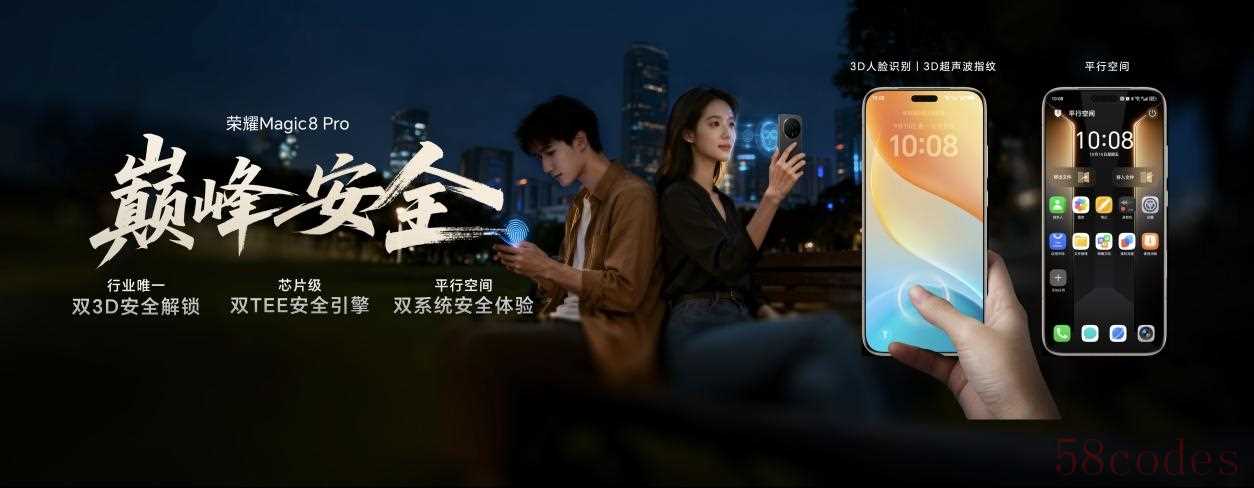 安全方面,荣耀Magic8 Pro配备行业唯一双3D安全解锁,通过欧盟支付级安全认证,加上芯片级双TEE安全引擎和平行空间双系统安全体验,隐私安全三保险;此外还有行业独家的三位一体AI反诈能力,换脸、变声、诈骗话术都能准确高效识别,荣耀的AI换脸反诈还入选了《时代周刊》2025最佳发明榜。