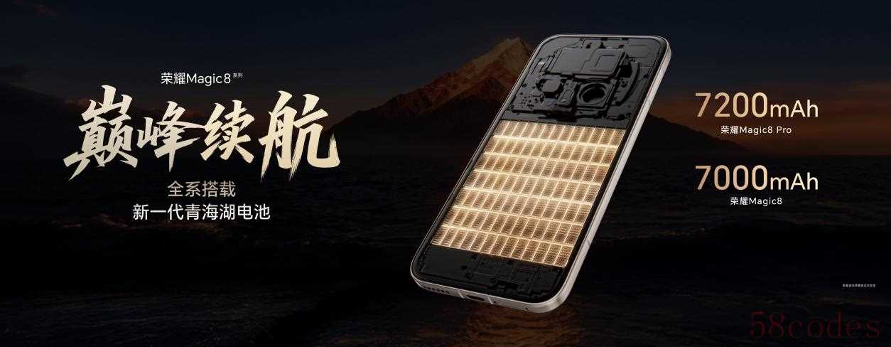 续航方面,荣耀Magic8系列搭载新一代青海湖大电池,全系容量突破7000mAh,并支持120W有线与80W无线双快充,兼容100W PPS充电协议,用电脑充电器也能进行超级快充。而在荣耀都江堰AI电源管理系统和骁龙芯片底层调教下,将典型场景功耗优化了13%,荣耀Magic8 Pro做到了旗舰机续航第一名,达成巅峰续航体验。