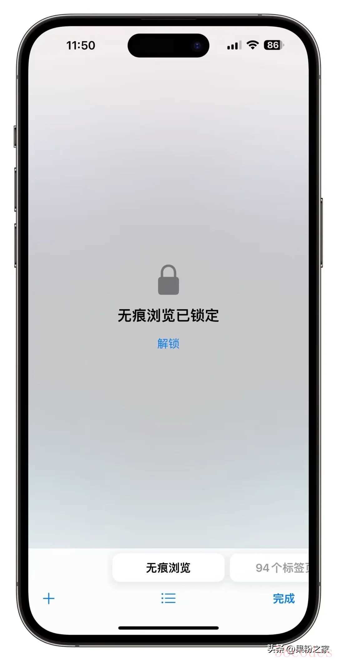 说到Safari浏览器的无痕浏览模式,在升级iOS 17之后也迎来重大更新,新增了“锁定”功能,现在每次打开无痕浏览模式需要通过Face ID认证,只有认证成功后才能打开,再查看里面的内容。