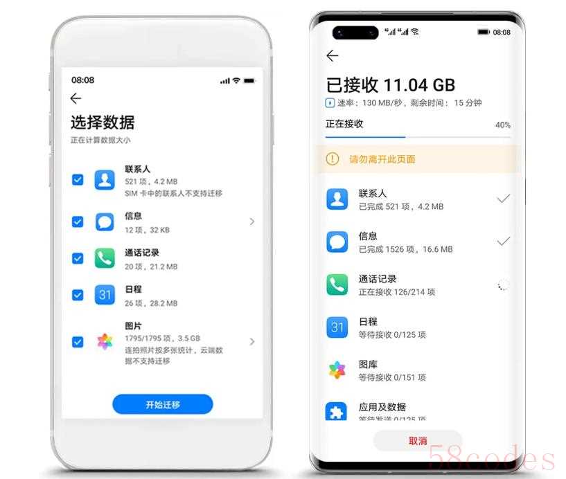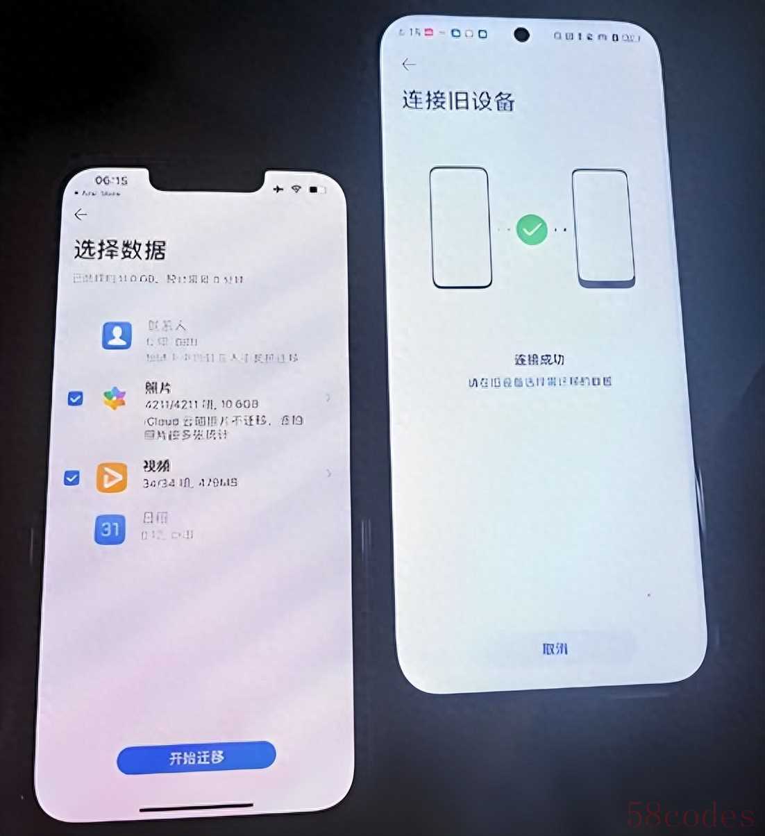 "两部手机:" 一部苹果旧手机(iOS 11 或更高版本),一部华为新手机(EMUI 9.0 或更高版本)。