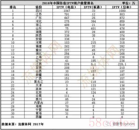 "【独家】31省IPTV用户数(电信 联通)汇总及前十强进阶之路"