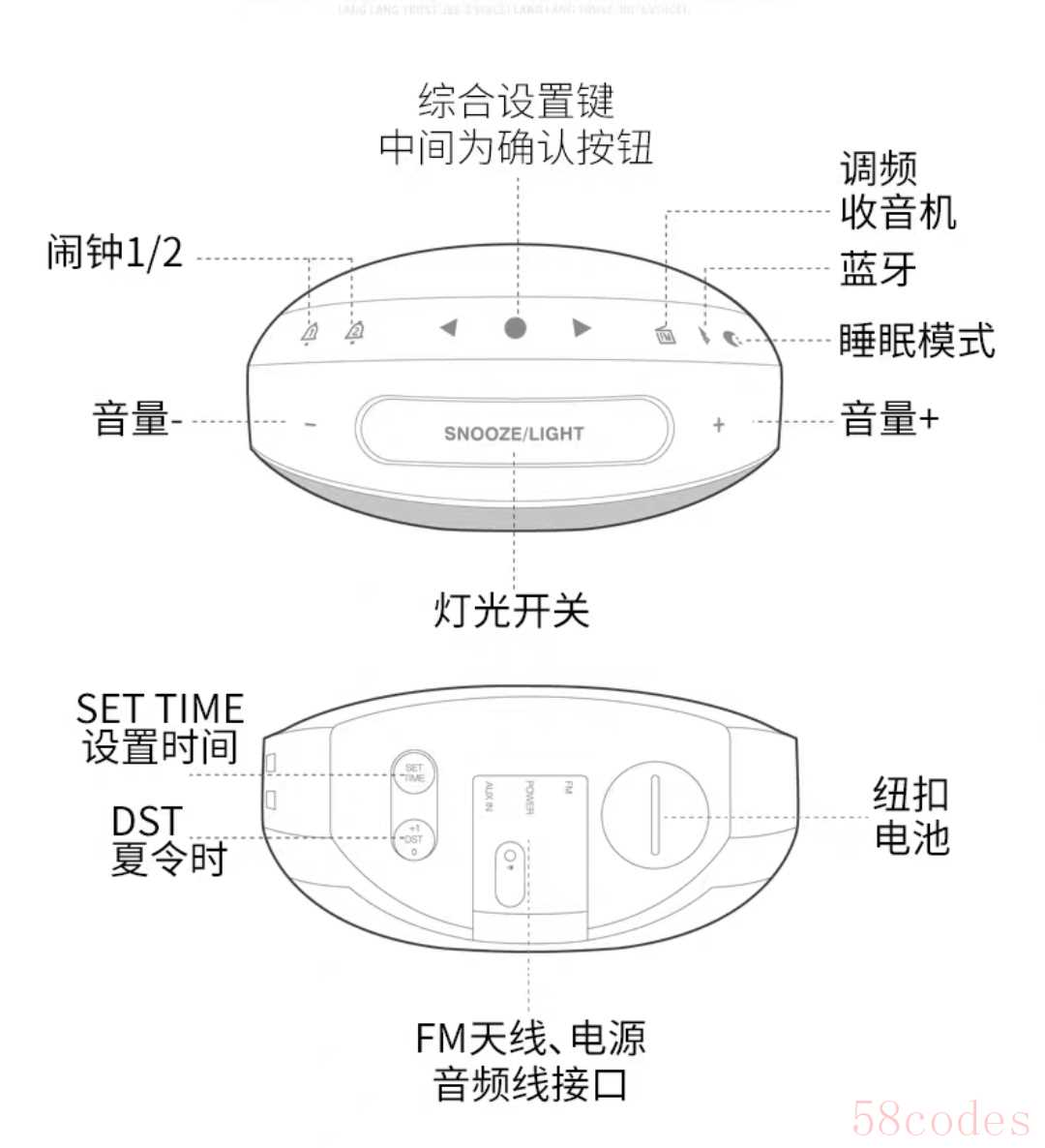 桌面显示时间调整。顶部有两个大按钮,点击set time按钮,屏幕跳动按顶部左右两个三角箭头按钮进行调整,确定好了就点两三角箭头中间的原点按钮就行确定。闹钟设置:可以设置两个闹钟,点击左上方任一闹钟按钮就进去闹钟时间设置,跟时间调整设置一样,按原点按钮就行确认。
