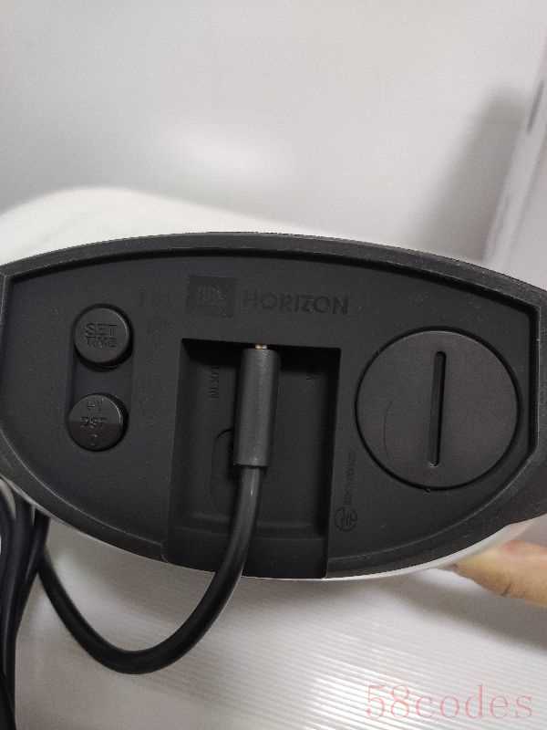 废话不多说,首先是接电源,对的这款智能音响是插电使用的,必须接电源。电源就在正下方最中间的那个接口,接口是有点难插入,用点力插入即可(一开始就是因为不好插入我还以为自己找错了,最后证明大胆插入是对的)。旁边显示FM的接口,就是FM天线接入口了。