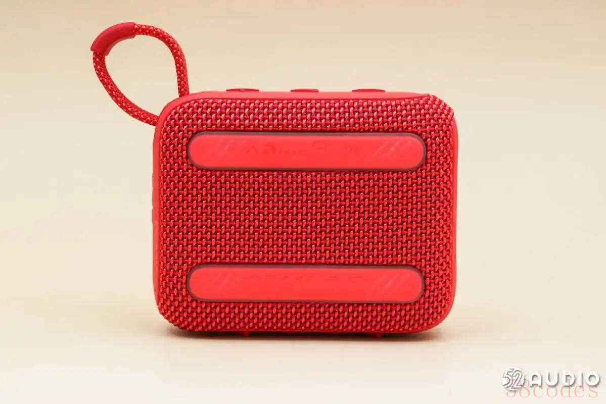 JBL GO4音乐金砖四代采用红底设计,正面搭配JBL品牌的标志性Logo,主体采用了防水编织层和硅胶材质,配备小提手设计,时尚感和活力十足,色彩大胆亮眼,非常适合追求个性的用户。