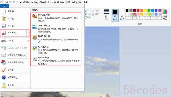 先选择图片,右击鼠标,在“打开方式”中选择“画图”进入编辑页面,然后点击“文件”按钮,找到“另存为”,软件支持导出为PNG、JPEG、BMP等多种格式,我们选择需要点击就好。