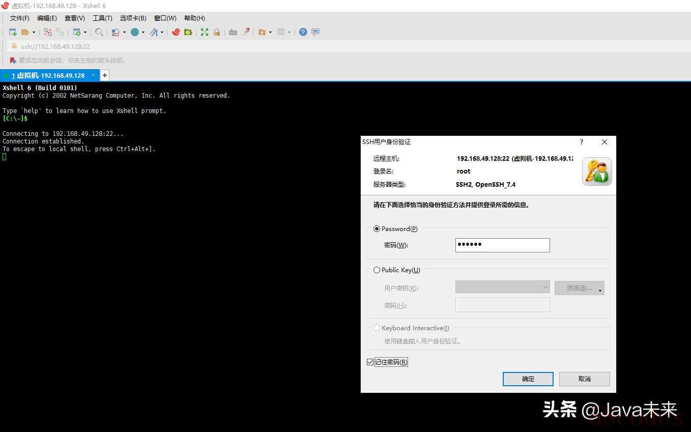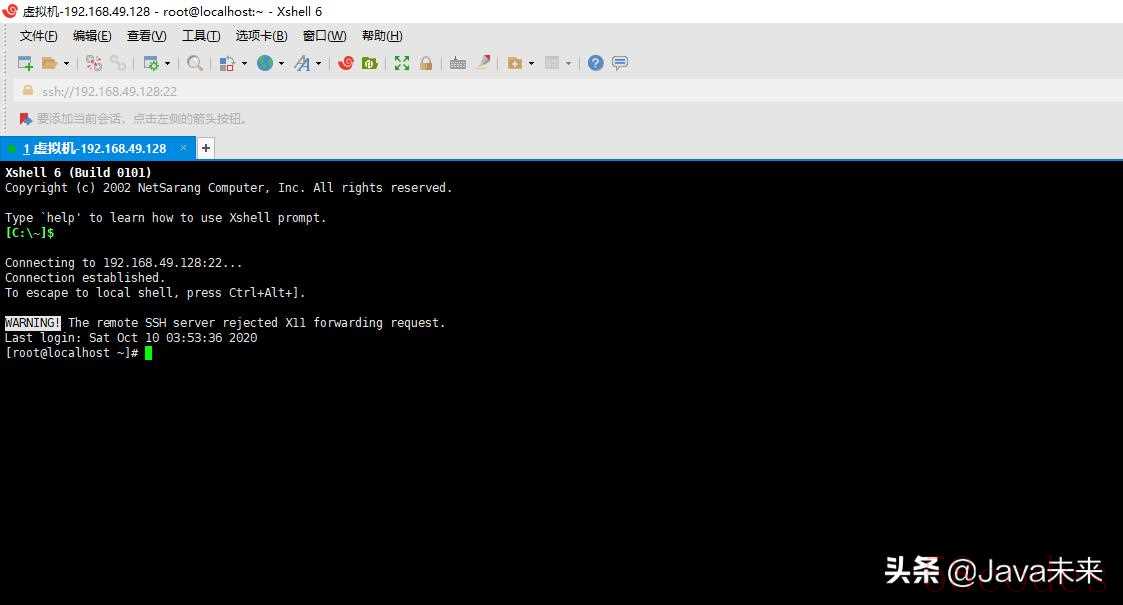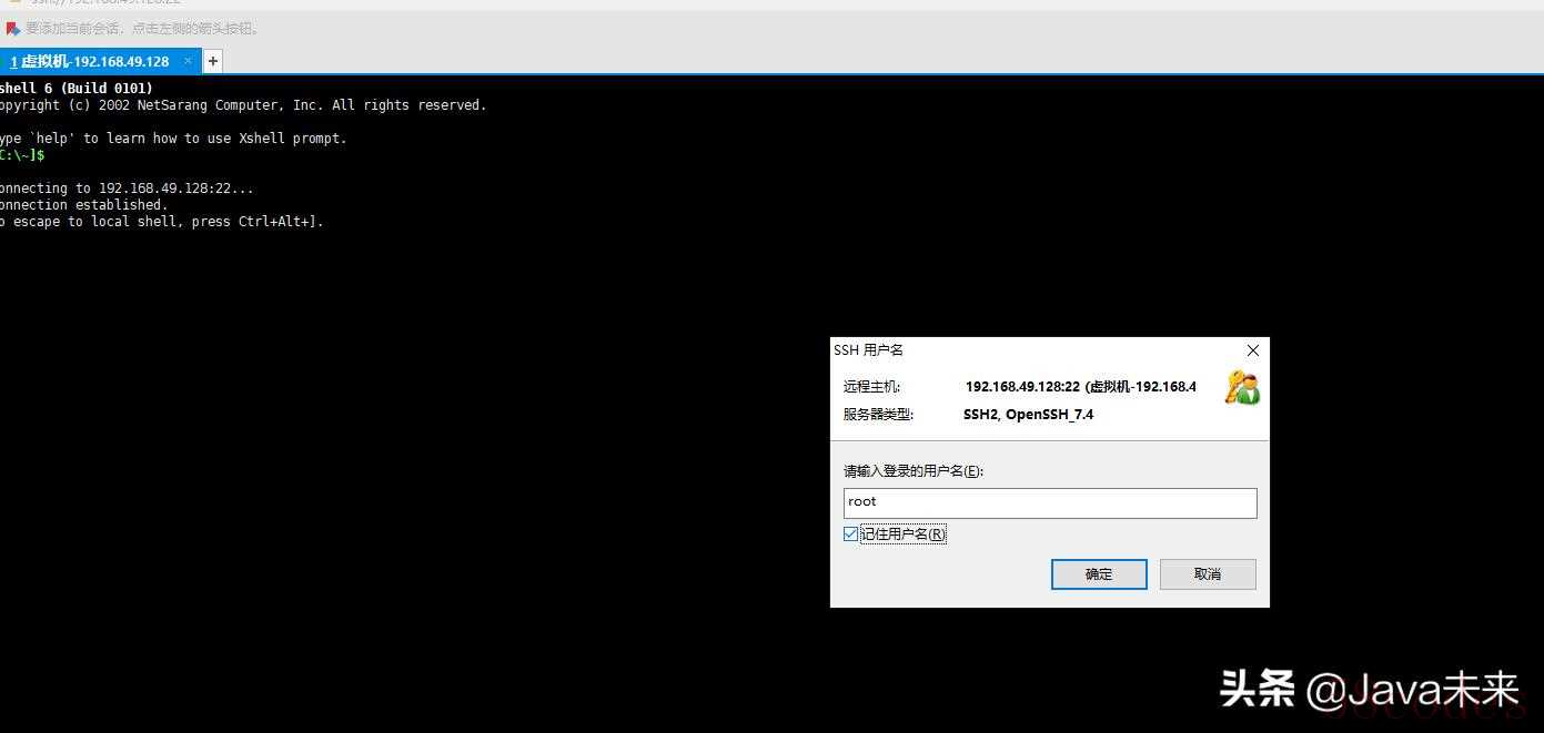 6.我们来测试下主机远程访问虚拟机,可以发现已经成功连接上了。