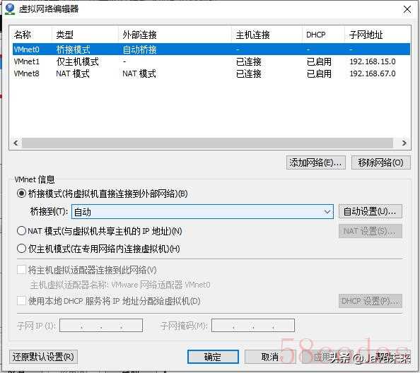 2.选择VMnet8 NAT模式,默认会读取你主机的网络配置