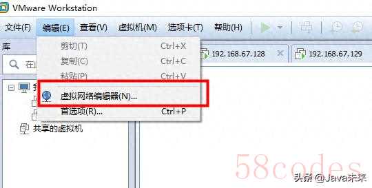 以上三种网络模式都可以实现本机远程连接到你的虚拟机。我们来看下 vmware workstation的里的虚拟网络编辑器。打开编辑-虚拟网络编辑器菜单: