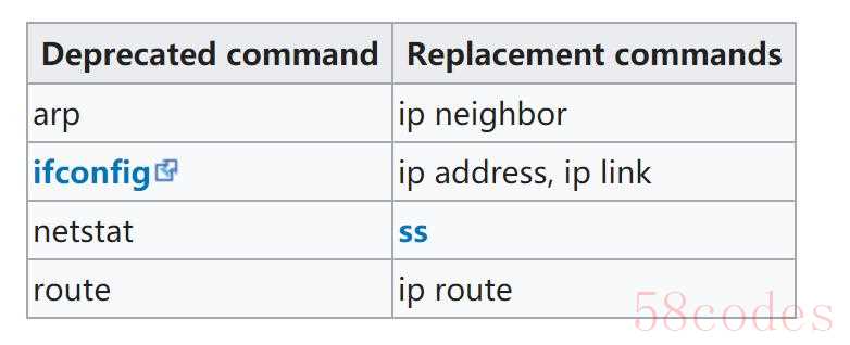 现在最常见的有两组网络命令,net-tools和iproute2(参考archlinux wiki).如下图是这两组工具集中常用命令的对应关系,左边的是net-tools包里的命令集,右边的则是较新的iproute2工具集.中文互联网教程上经常使用的ifconfig命令就是net-tools包里的.现在我们推荐使用iproute2工具集来管理网络,因为net-tools由于不再维护,会逐渐被废弃.我们最好不要混用这两组命令,造成混淆.