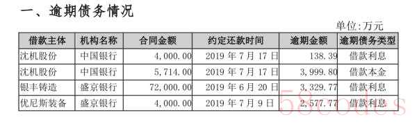 7月27日,沈阳机床发布公告称,公司有4笔银行借款出现逾期,总金额超过1亿元。