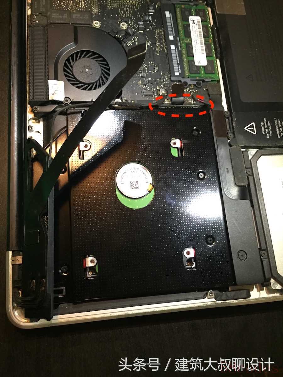 将新硬盘按照之前光驱的位置装在机器里,注意连接口要对上