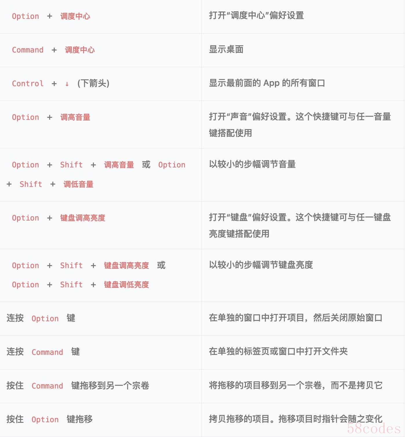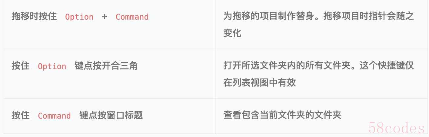 | `⌘` + `W` | 关闭当前窗口 | 对 Finder 窗口无效,需使用 `⌘` + `Z` 撤销关闭 |