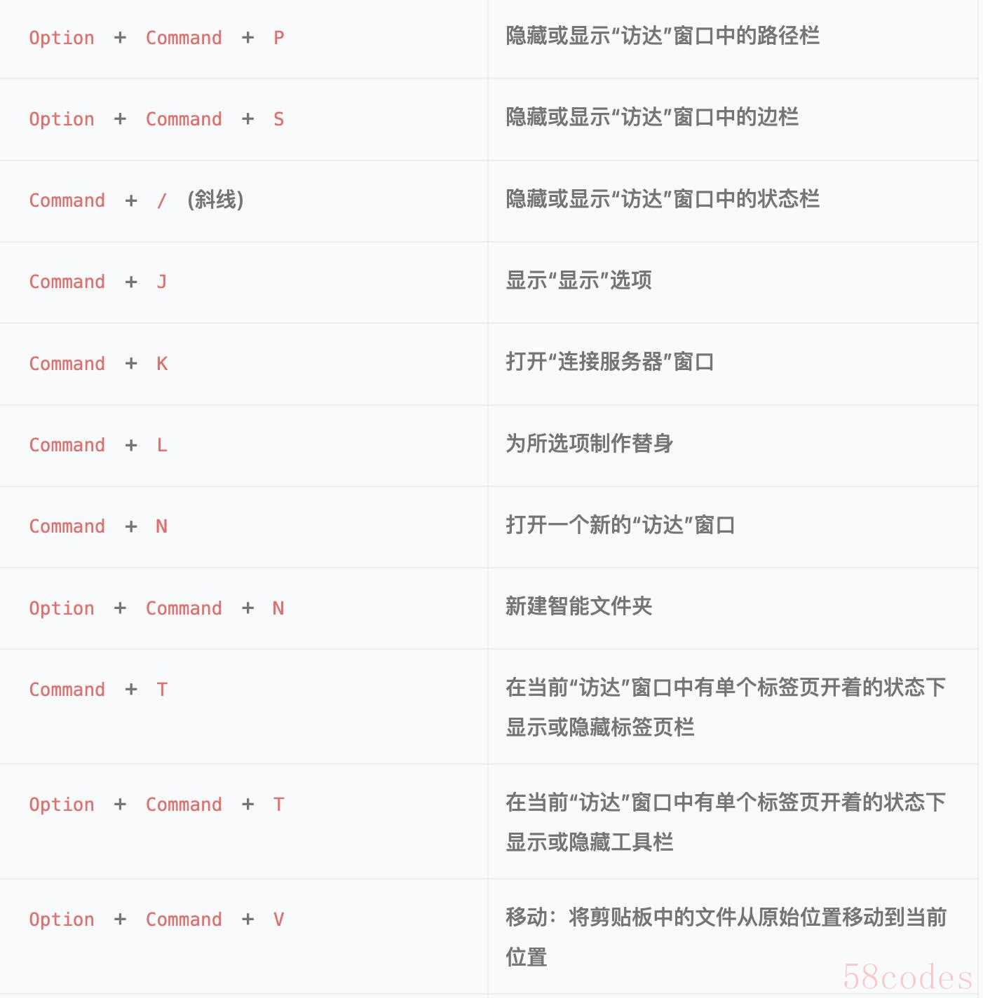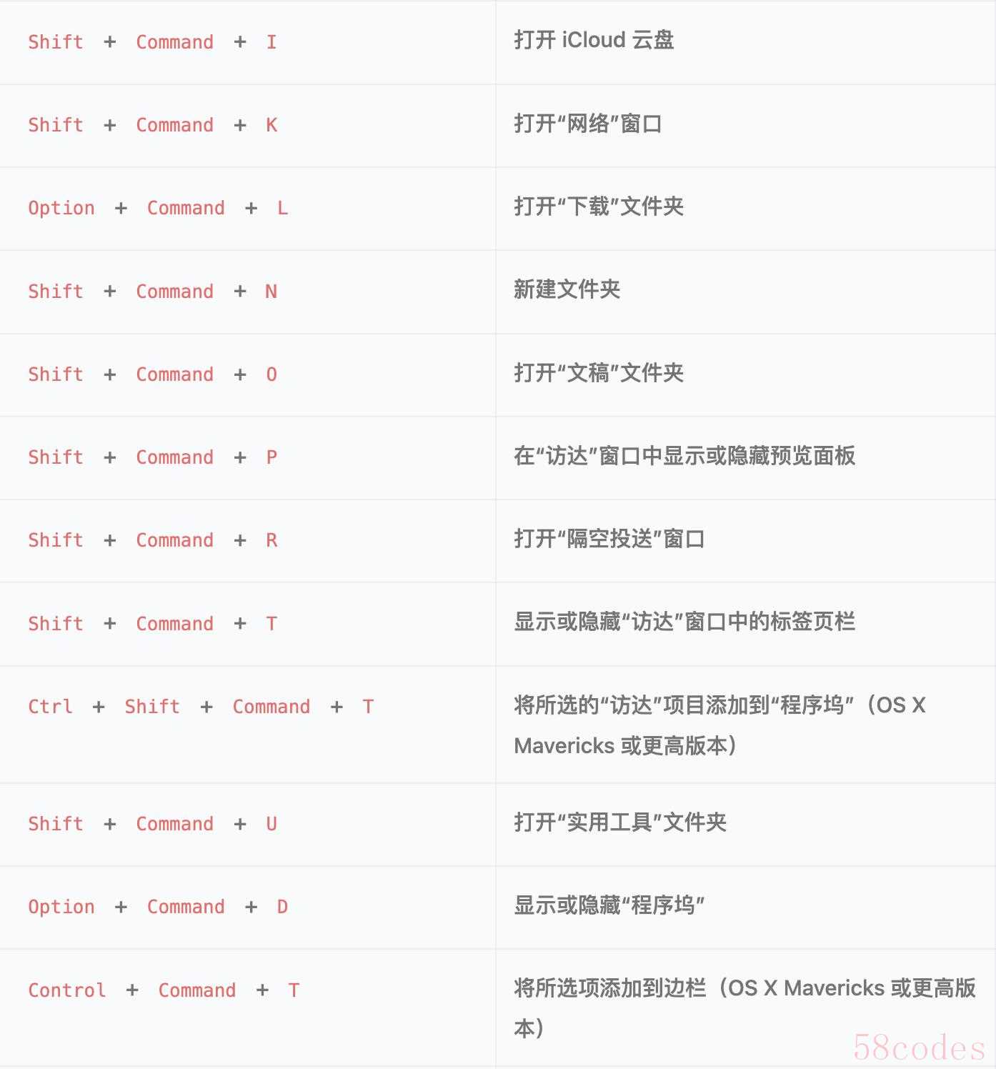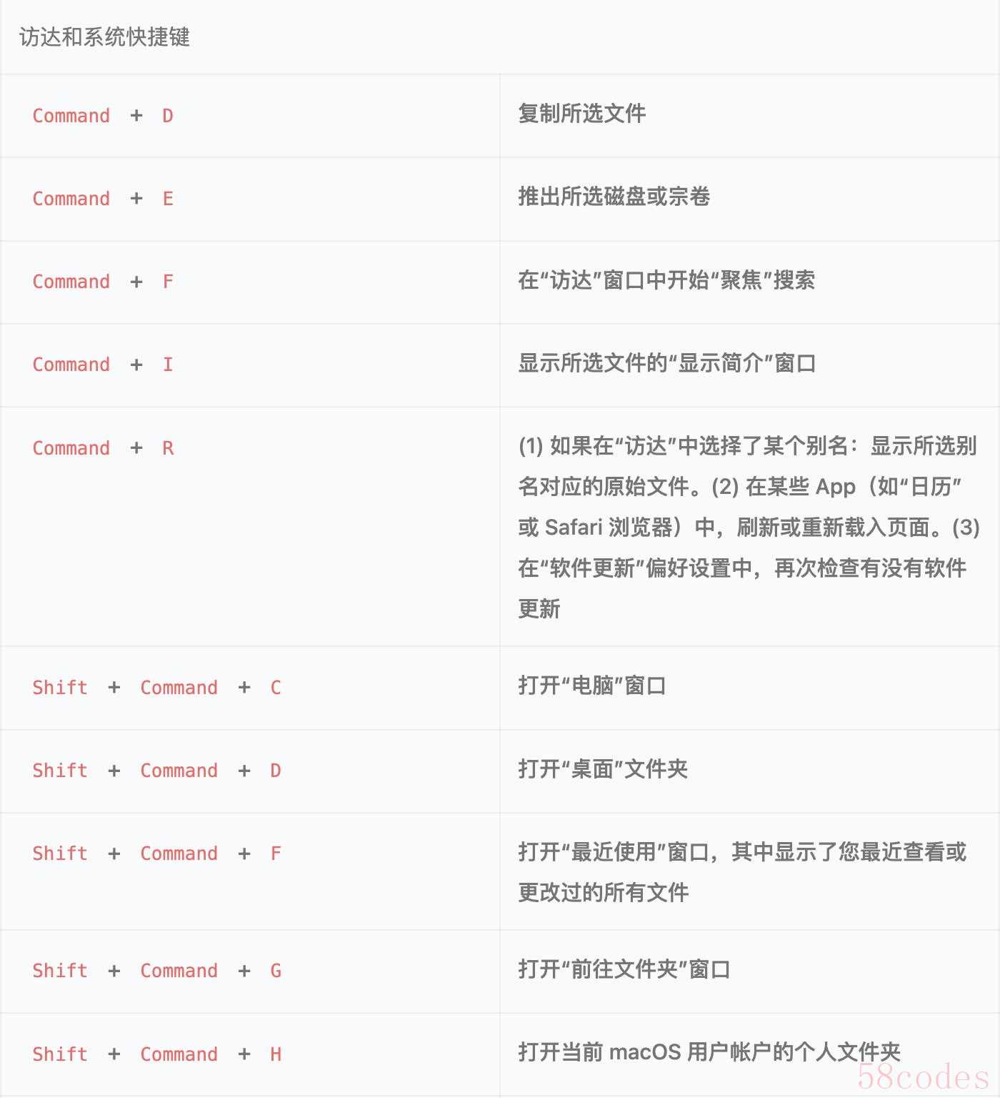 | `⌘` + `N` | 新建 | 新建文档、窗口、 Finder 项目等 |
