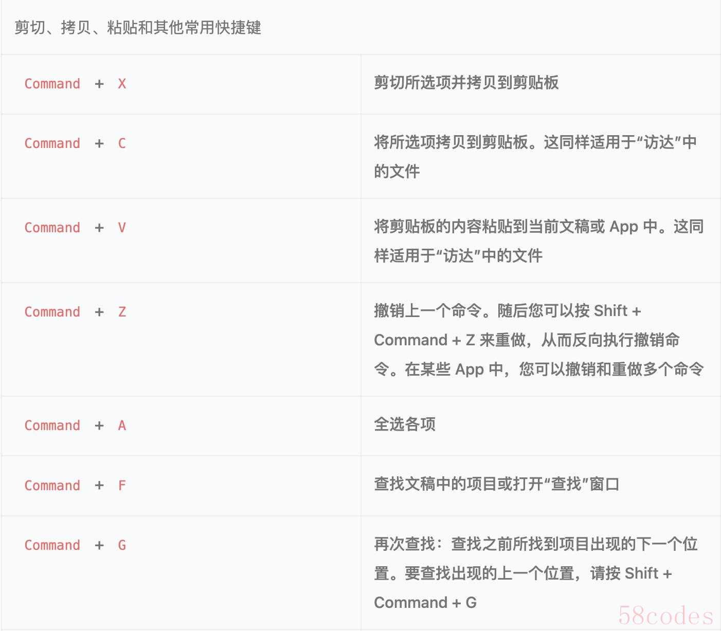 这是一份 macOS 常用键盘快捷键大全,涵盖了系统、应用程序、编辑、导航等多个方面。建议熟练掌握基本快捷键,能显著提高工作效率。