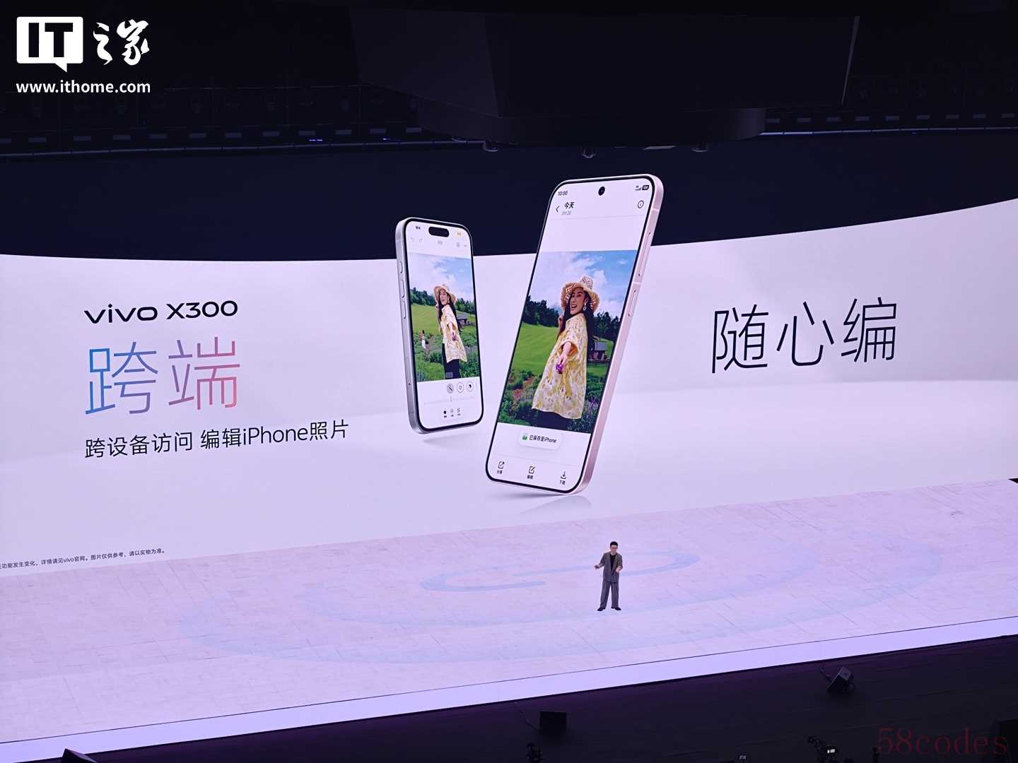 此外,vivo X300 系列手机还支持跨设备查看 iPhone 照片,用户可用 iPhone 拍完照后,在 vivo 手机上编辑 iPhone 拍的照片。