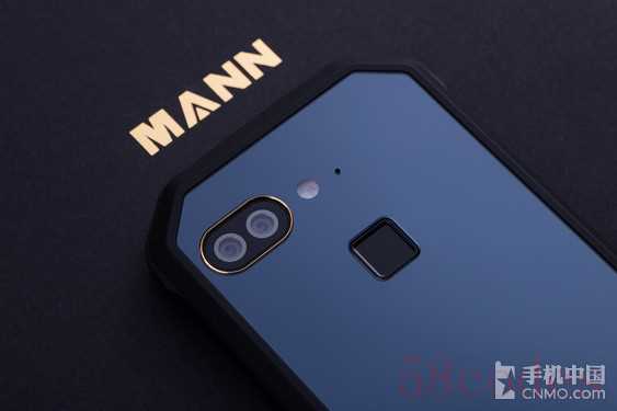 在机身正面,MANN 8S放置了1600万像素的前置摄像头、呼吸灯、光感&距离感应器、听筒、话筒等元器件,让整个正面看起来更加的紧凑。机身背面的这块玻璃上,则放置了1200万彩色+黑白双摄、闪光灯、副麦克风孔、指纹解锁键以及扬声器,当然,还有MANN的logo,看上去比较简约大气。