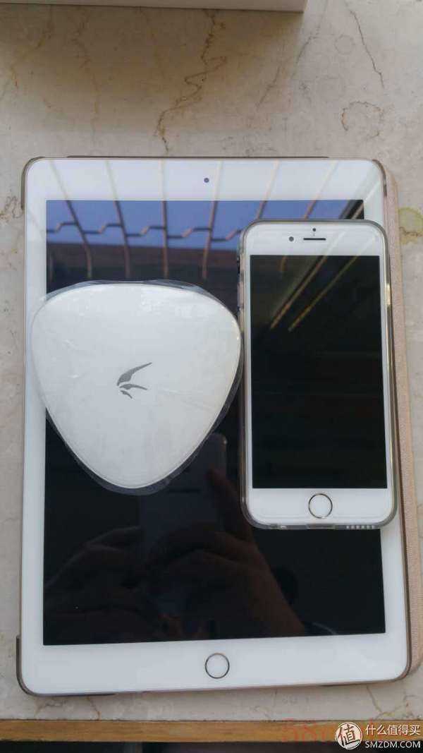 ▼下载宝,个头真的很小,跟iphone6和ipadair2放在一起比较直观,有一点点分量,不是那种轻飘飘拿着一块塑料的感觉,