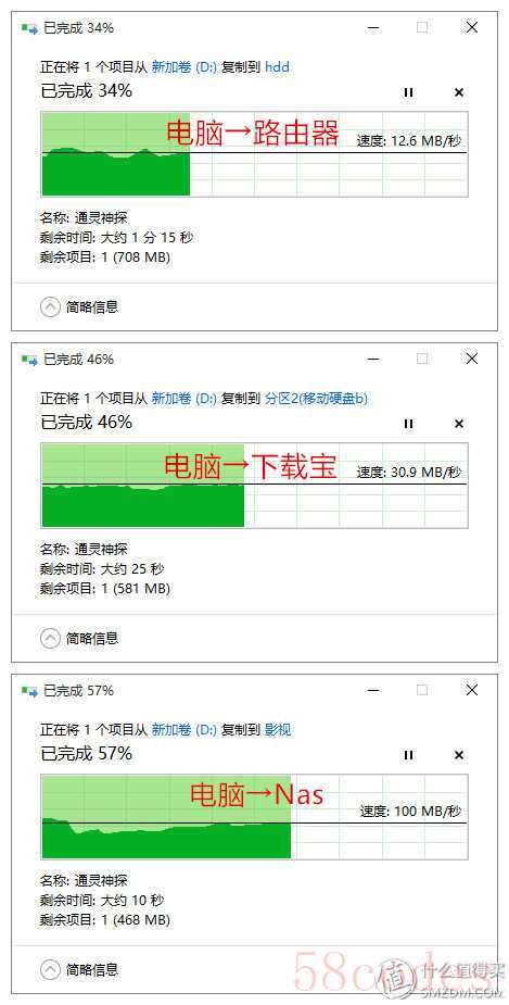 我一直认为nas坏掉的那块硬盘就是因为我总在Nas里跑迅雷远程,所以在换硬盘之后基本都用路由器挂移动硬盘进行下载,但是路由器接上硬盘之后的局域网传输速度实在慢的可以,跟Nas在局域网内动辄百八十兆每秒的速度相比真是天差地远,所以我对下载宝的usb3.0口和千兆网络是非常非常期待的,一切设置停当之后第一件事情就是测速,结果。。。。。。