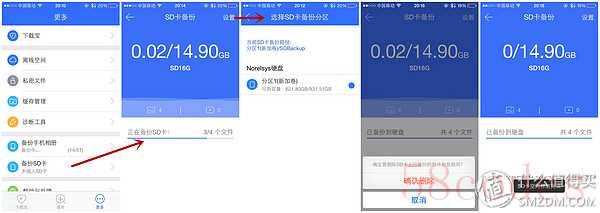 ▼sd卡备份,卡插进下载宝里就开始自动备份,是增量备份,没有更多的设置,备份方式比较单调,但是在备份后有个功能能把卡里的内容清空,对卡小还爱照相的人来说挺方便的