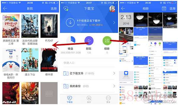 ▼影院点进去会显示硬盘上的电影并且自动匹配图片,相册点进去能看到硬盘上的图片