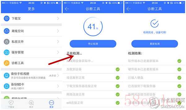 ▼诊断工具,这个不错,能看下载宝不好用的时候是哪里出现问题了