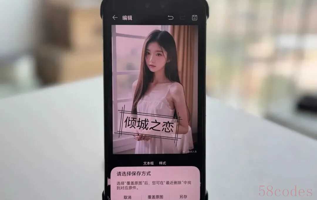 完成编辑后,只需轻触屏幕右下角的对勾图标以确认您的更改,然后点击“保存”。如果您希望将修改后的照片直接替换原图,可以选择“覆盖原图”选项。一切就绪后,您将看到自己精心添加文字的照片,完美呈现在屏幕上。