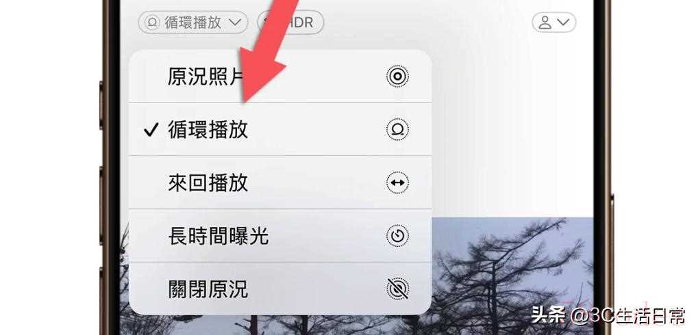 设置方法:打开“实况照片” - 点击左上角下拉选单,选择“循环播放”