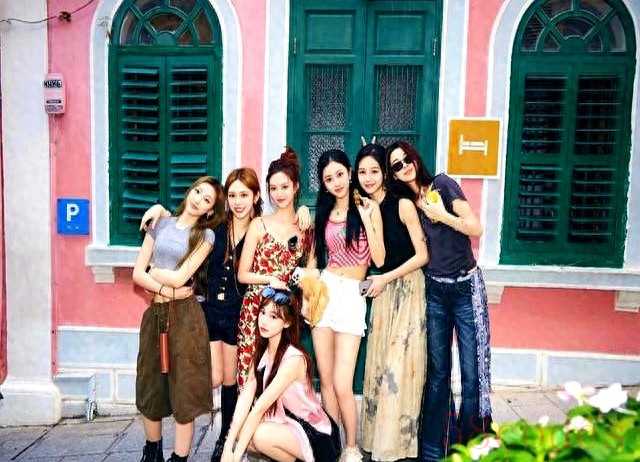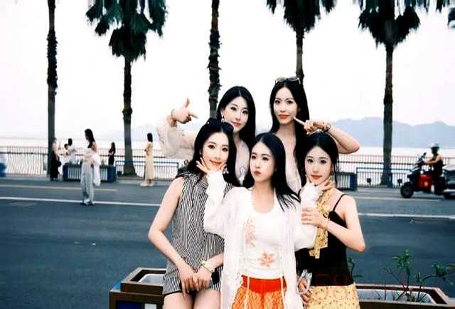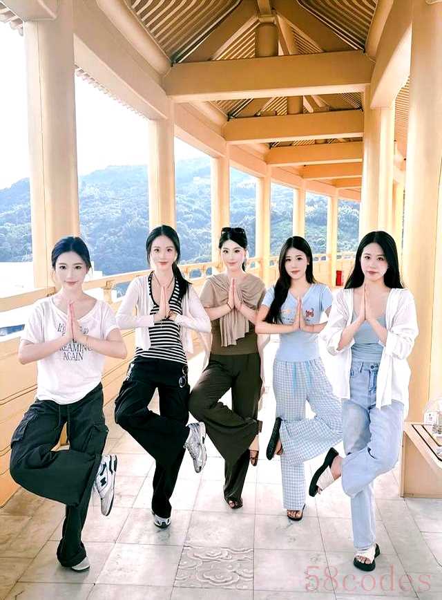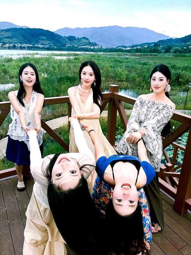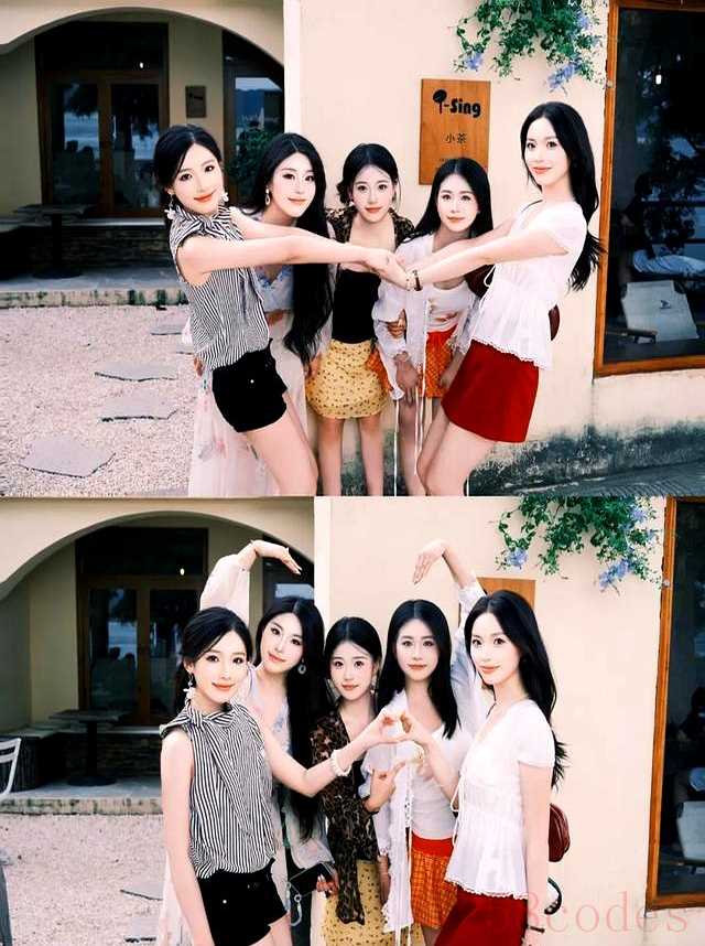 模板里最简单的“前二后三拉手后仰”,试一次就知道:后排只要脚尖点地,膝盖微弯,重心往旁边倒,脸立刻小一圈;前排蹲得略侧,下巴往前送一寸,双下巴原地消失。