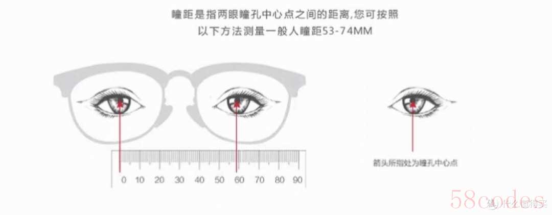 测量自己的瞳距,网上配镜我们来了解自己的瞳距。瞳距分为近视瞳距和远视瞳距,这张图片是用来测量我们的近视瞳距的,但是在日常使用中远视瞳距也是非常重要的我们不能忽略,所以还是要用专业的仪器测量出来才更精确。当然实在没办法的情况下我们只能自己动手。在自己测量的近用瞳距的数据上加上1-2mm