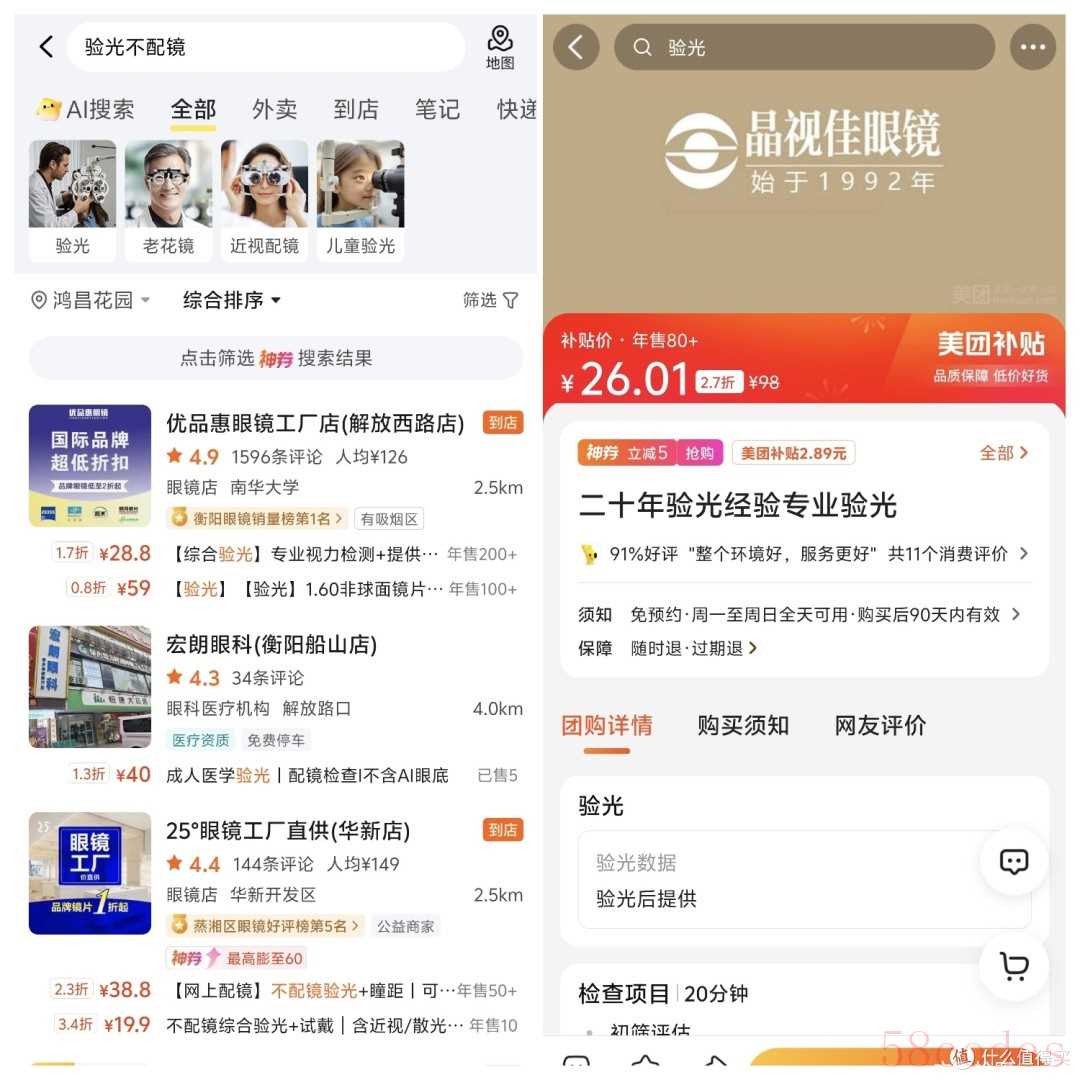 美团APP搜索“验光服务”,你会发现新世界,里面有好多眼镜店在卖验光服务,价格不贵30-40元左右,我看到最便宜的是26元。购买之前可以先看看评价,选择你觉得合适的下单就好
