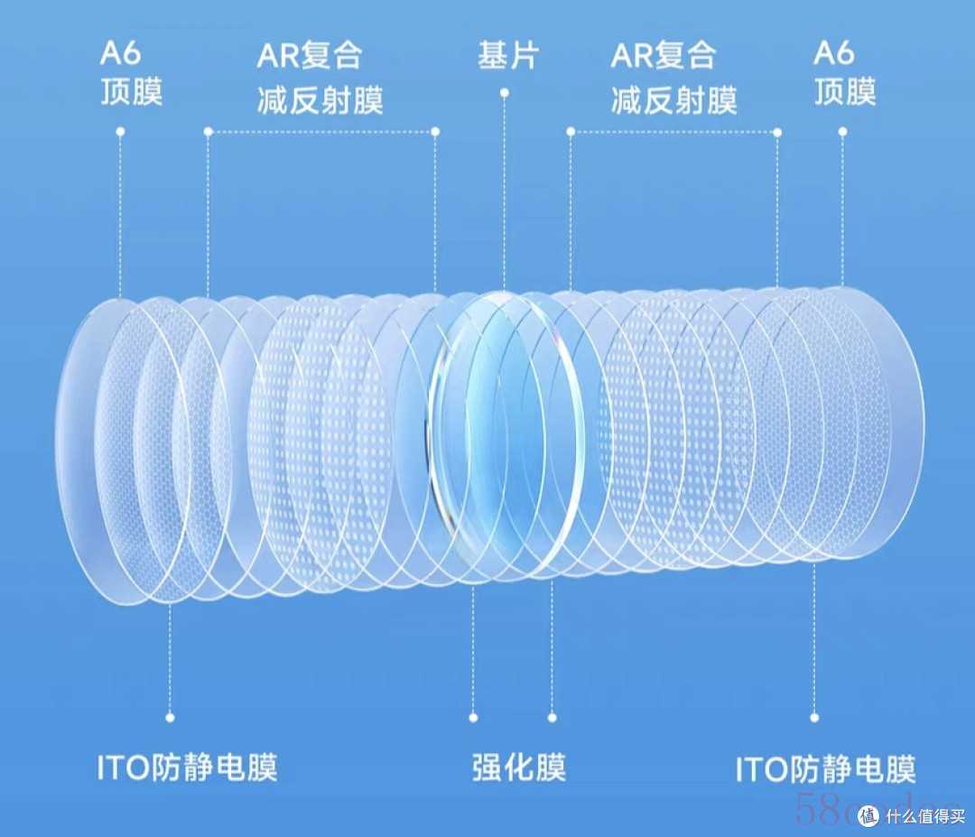 一般来说一款镜片各种强大的功能耐磨、耐脏、抗蓝光等等主要就是靠覆盖在镜片的特殊涂层来实现,这就是镜片的膜层。这是各个品牌的核心技术,理论上膜层越多镜片就越好,价格也越贵