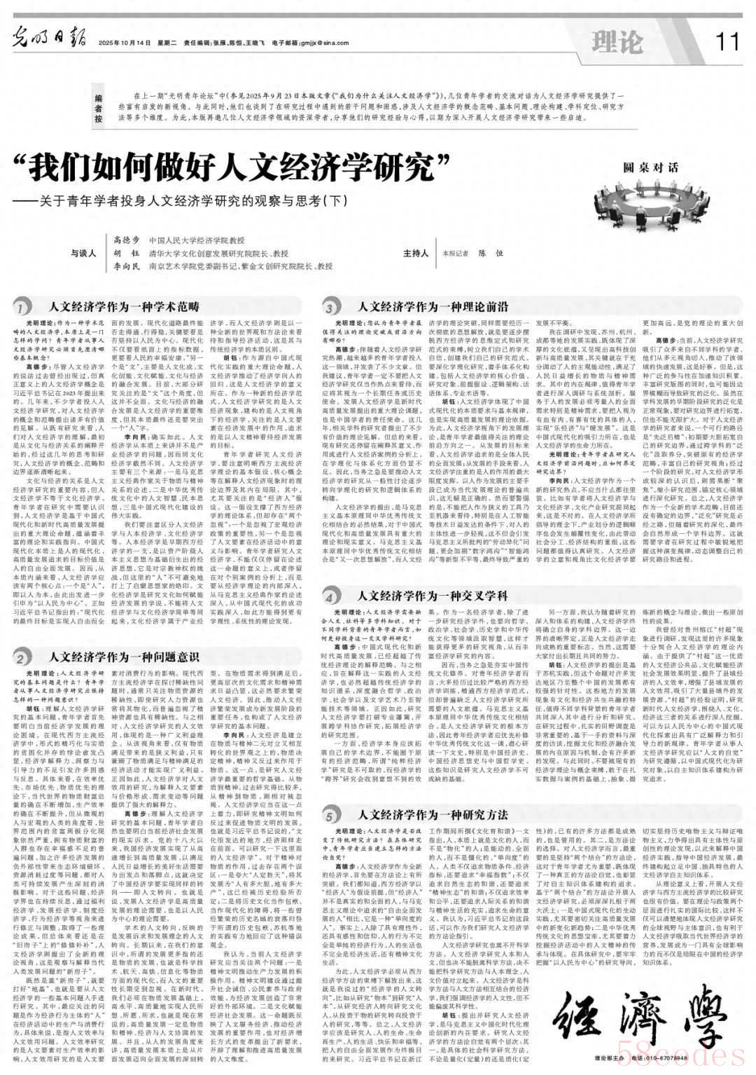 上一期“光明青年论坛”中(参见2025年9月23日本版文章《“我们为什么关注人文经济学”》)