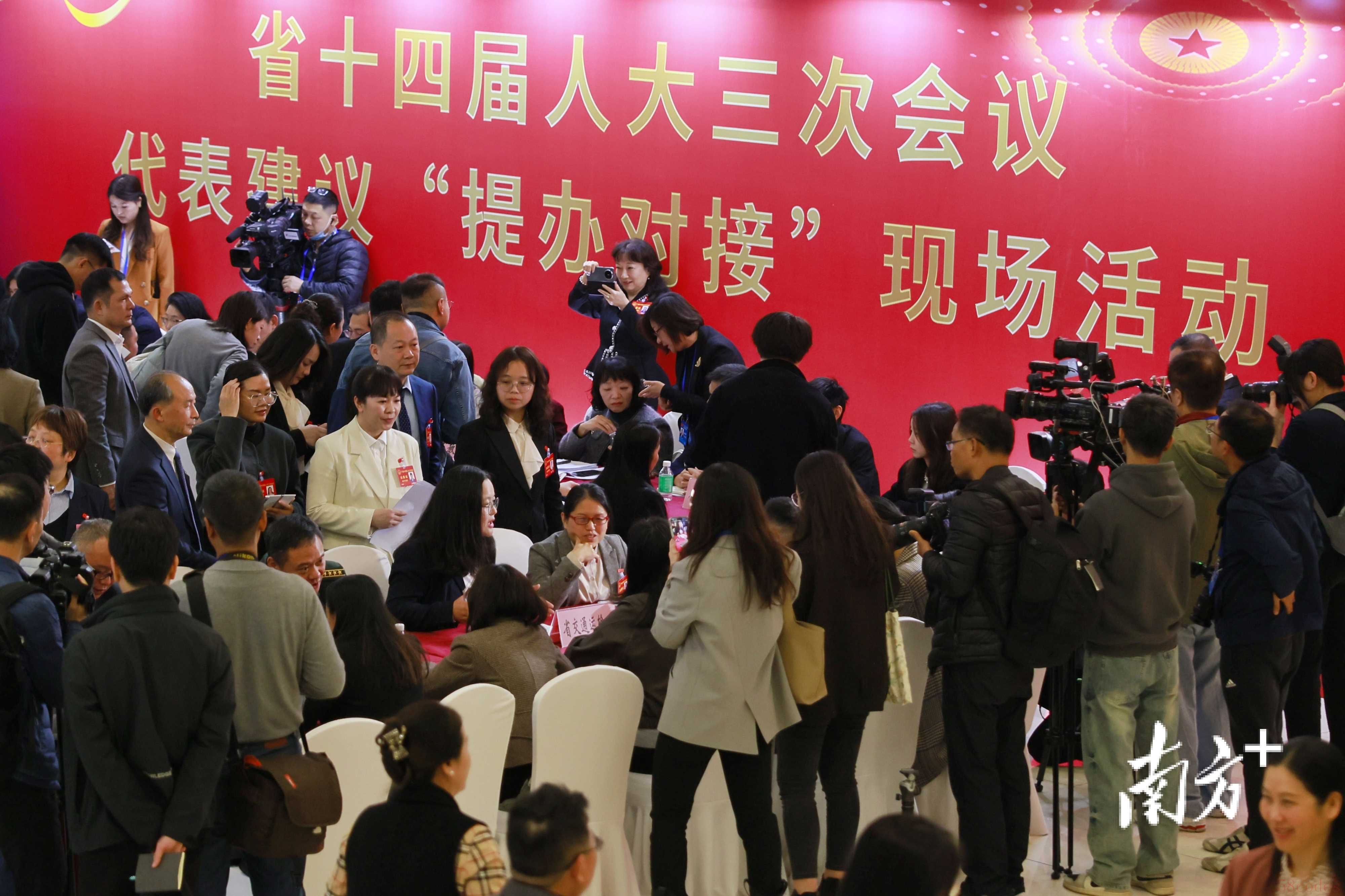 1月14日下午,广州白云国际会议中心东方厅门外格外热闹。一眼望去,省发展改革委、省教育厅、省农业农村厅等单位的工作人员摆起了“摊位”。在他们面前,手持建议议案的“主顾”们——来自各行各业的人大代表已经排起了长队。