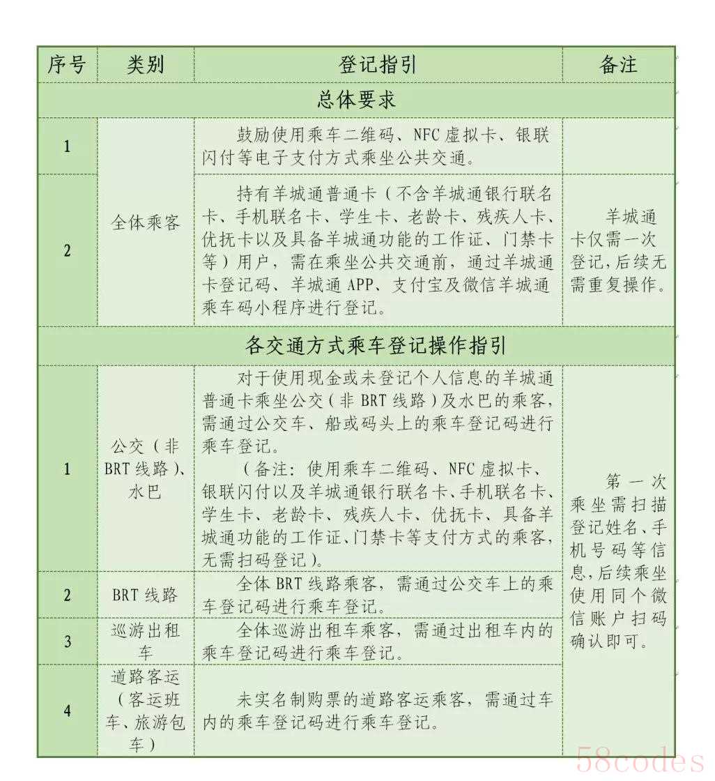 市交通运输部门目前正组织抓紧印制及张贴二维码,预计近日完成。市交通运输部门提醒广大乘客积极配合做好羊城通卡登记、乘车登记工作,筑牢公共交通防疫关,共同努力做好防疫工作。如有疑问,可拨打“96900”或羊城通客服电话4008440001咨询。