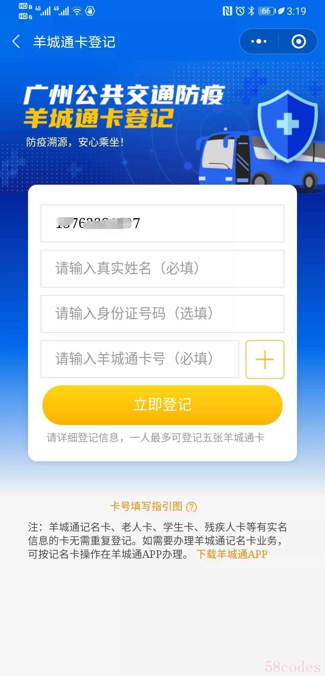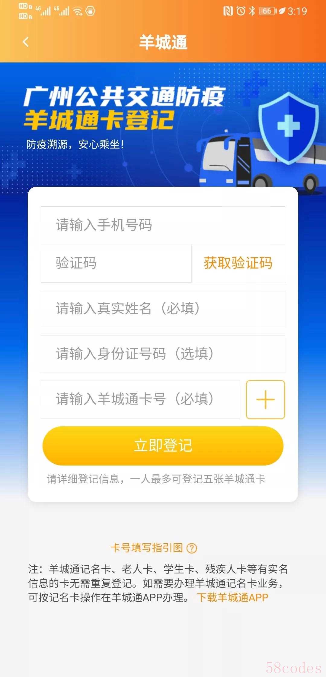 (羊城通APP“广州公共交通防疫羊城通卡登记”页面)